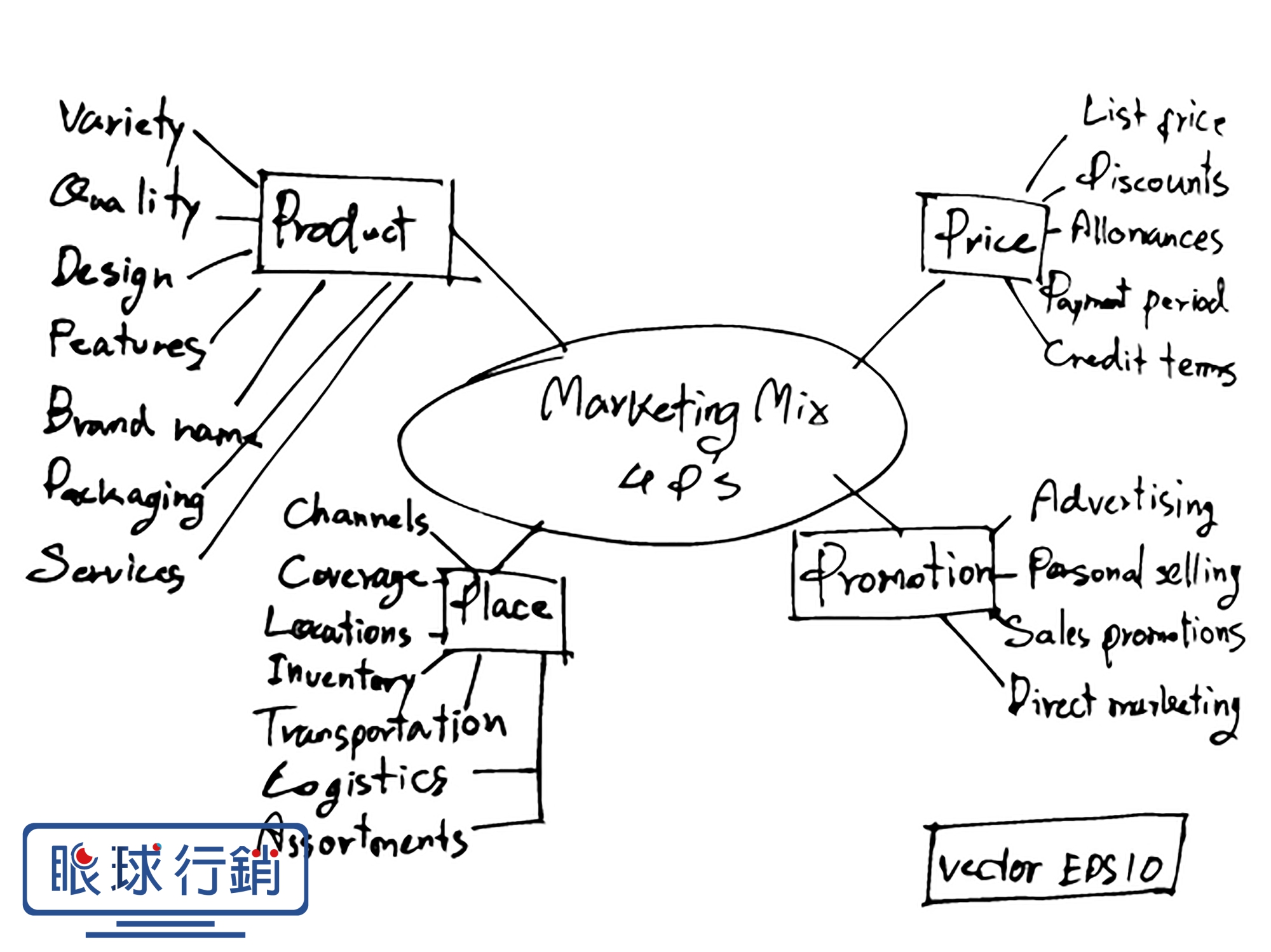在過去的傳統行銷都圍繞著行銷4P:產品(product)、價格(price)、促銷(promotion)、通路(place)。